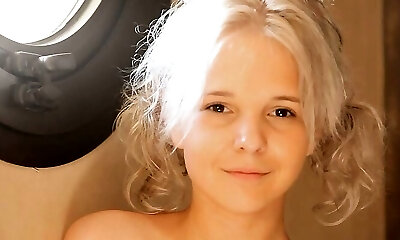 Short haired blonde White Angel stretches her twat
