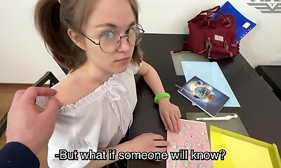 Bony hottie desires her teacher's giant dick in muff after daily class