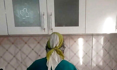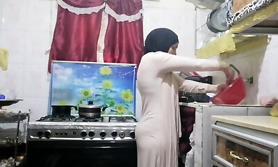 routine hijab arabic muslim in kitchen