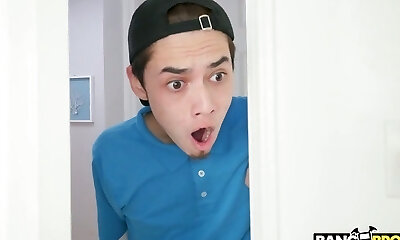 Big-chested raven haired sweetie blows smelly beef whistle of her young teacher greedily