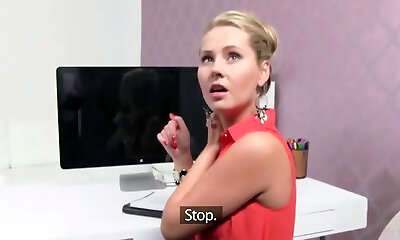 Blonde chick gets fucked during an conversation by a steaming stud