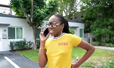 Ebony slut Amari Anne has to suck a prick before getting fucked