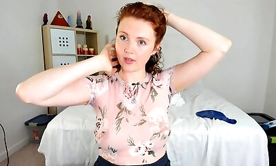 Red haired bookkeeper Amber Dawn is playing with closeup pussy