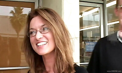 Public Agent Jumpy looking woman sucks and fucks gloryhole