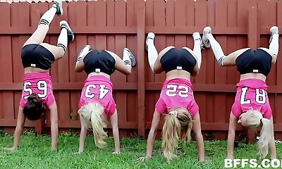 Four delicious pole dancers reveal their gorgeous bottoms and have fun